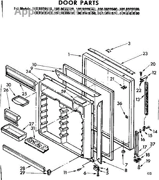 Parts for Kenmore 106.8609590 (1068609590, 106 8609590): Door Parts