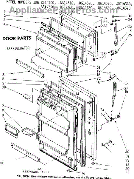 Parts for Kenmore 106.8614330 (1068614330, 106 8614330): Door Parts