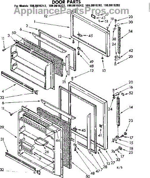 Parts for Kenmore 106.8615242 (1068615242, 106 8615242): Door Parts