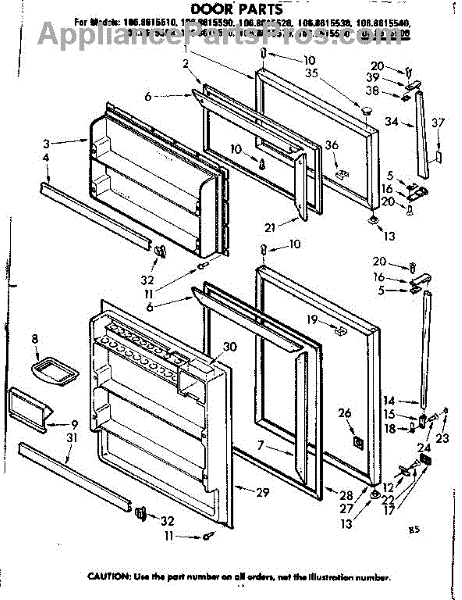 Parts for Kenmore 106.8615570 (1068615570, 106 8615570): Door Parts