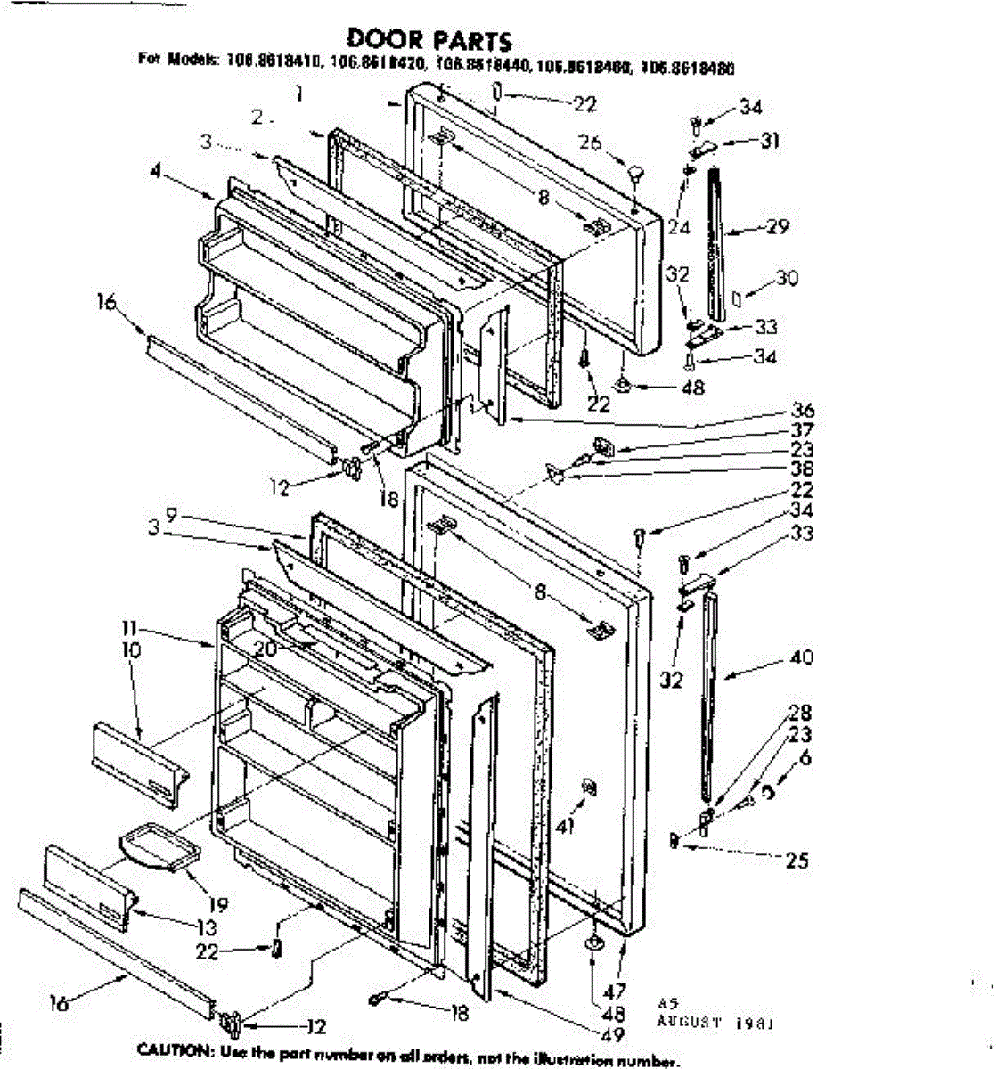 Parts for Kenmore 106.8618480 (1068618480, 106 8618480): Door Parts