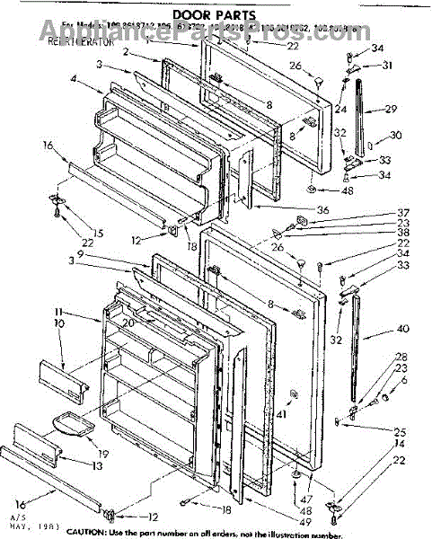 This door trim retainer replaces a broken or missing end cap that holds the door shelf rail/retainer bar in place on the refrigerator or freezer door. It keeps the rail secured so door-shelf contents are properly contained.
