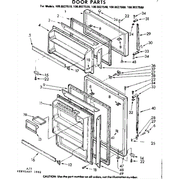 Parts for Kenmore 106.8627510 (1068627510, 106 8627510): Door Parts