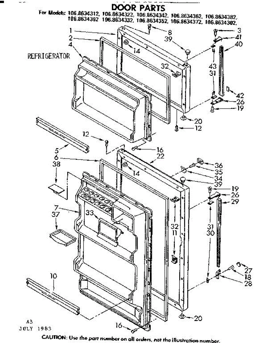 Parts for Kenmore 106.8634382 (1068634382, 106 8634382): Door Parts