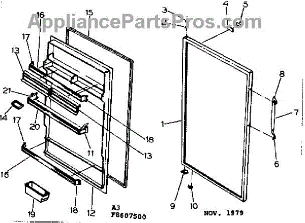 Parts for Kenmore 253.8607690 (2538607690, 253 8607690): Door Parts