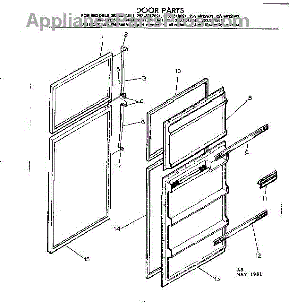 Parts for Kenmore 253.8612621 (2538612621, 253 8612621): Door Parts