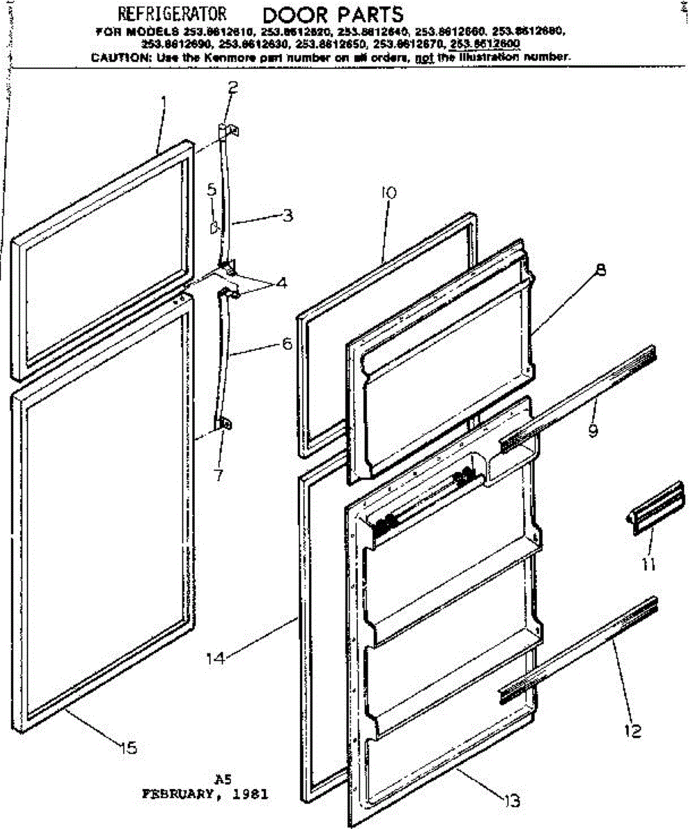 Parts for Kenmore 253.8612650 (2538612650, 253 8612650): Door Parts