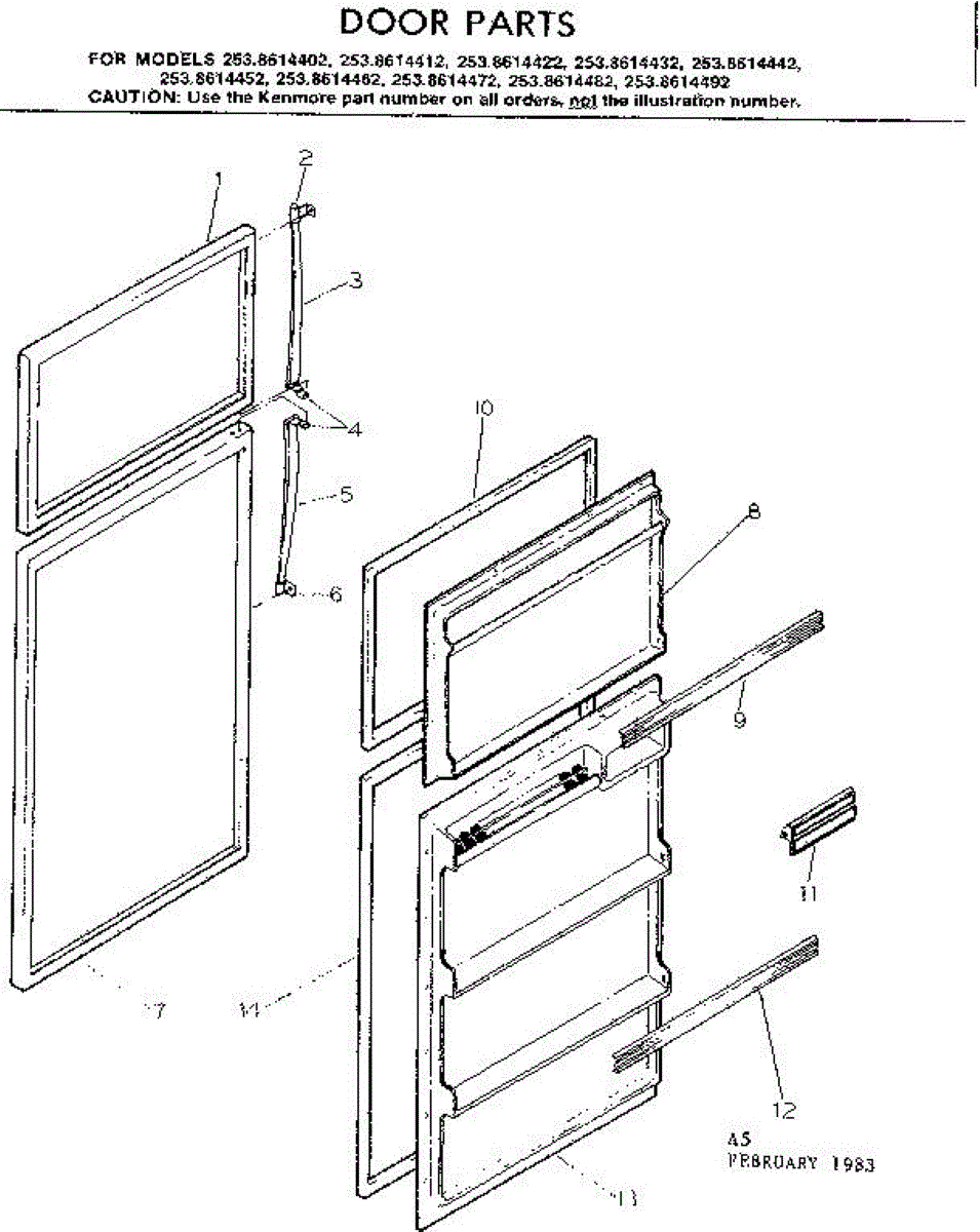 Parts for Kenmore 253.8614442 (2538614442, 253 8614442): Door Parts