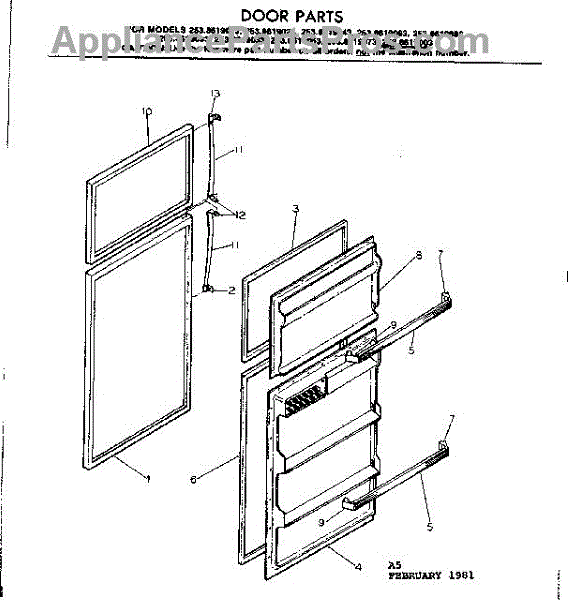Parts for Kenmore 253.8619033 (2538619033, 253 8619033): Door Parts