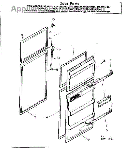 Parts for Kenmore 253.8619111 (2538619111, 253 8619111): Door Parts