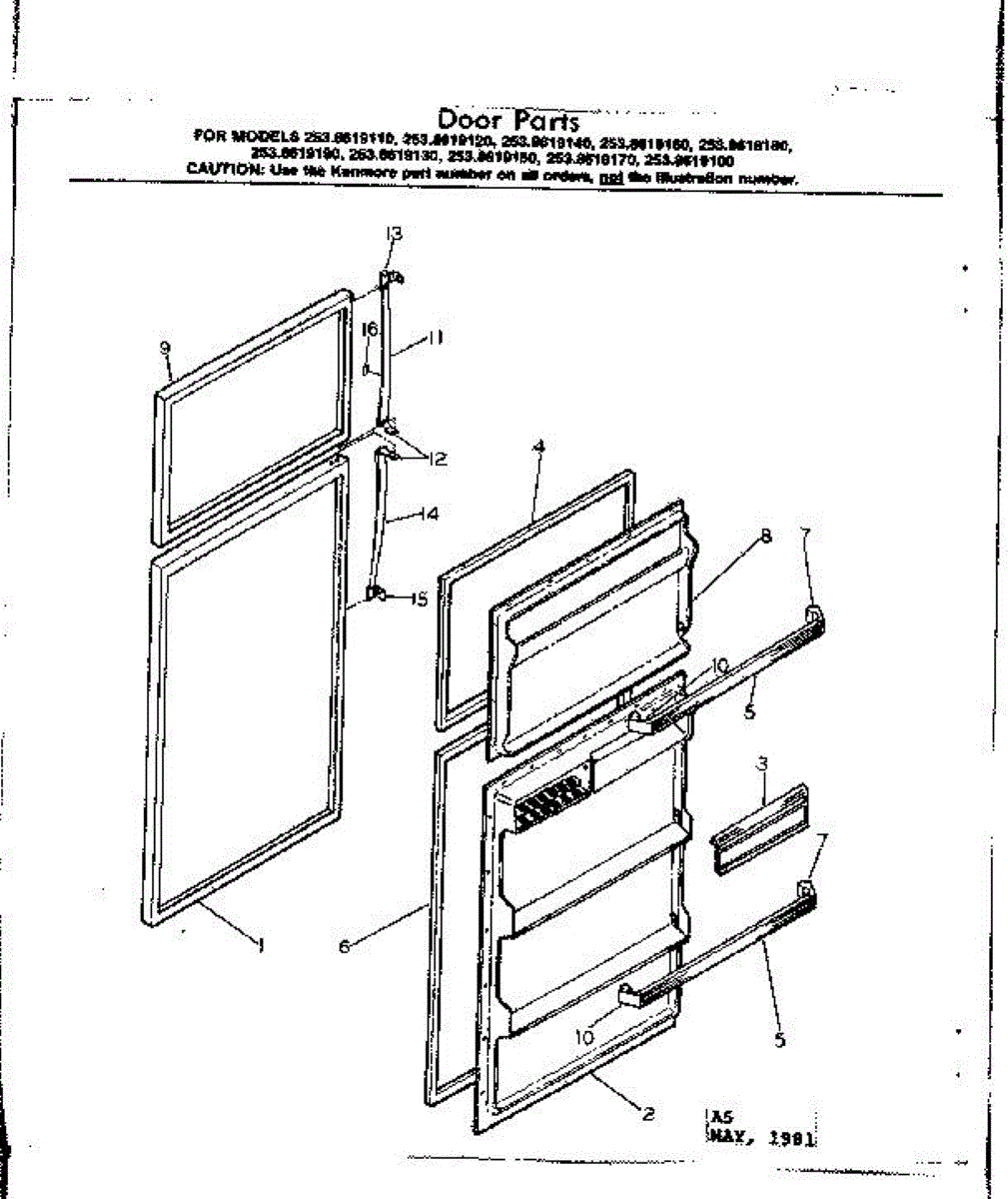 Parts for Kenmore 253.8619120 (2538619120, 253 8619120): Door Parts