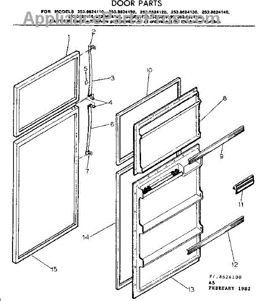 Parts for Kenmore 253.8624110 (2538624110, 253 8624110): Door Parts