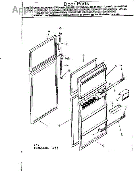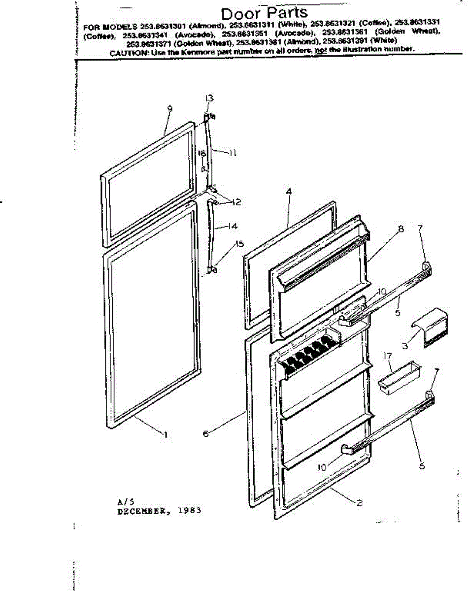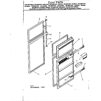 Parts for Kenmore 253.8631341 (2538631341, 253 8631341): Door Parts