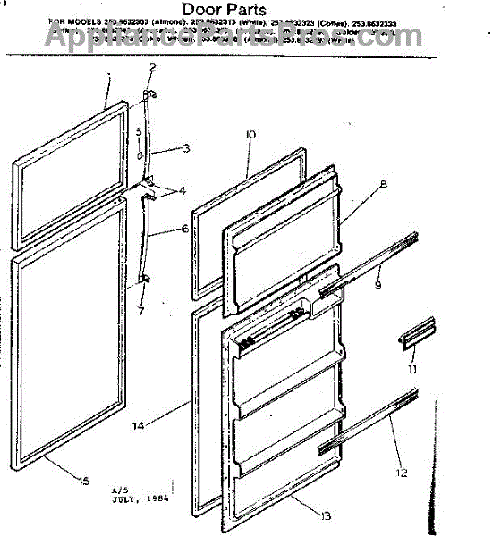 Parts for Kenmore 253.8632333 (2538632333, 253 8632333): Door Parts