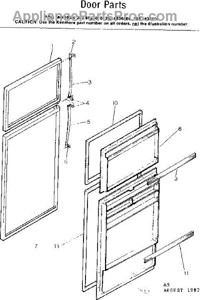 Parts for Kenmore 253.8636010 (2538636010, 253 8636010): Door Parts