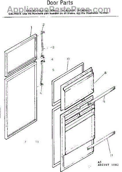 Parts for Kenmore 253.8636061 (2538636061, 253 8636061): Door Parts