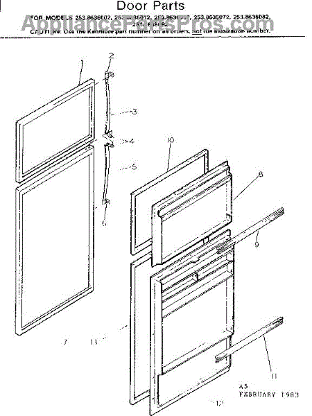 Parts for Kenmore 253.8636072 (2538636072, 253 8636072): Door Parts
