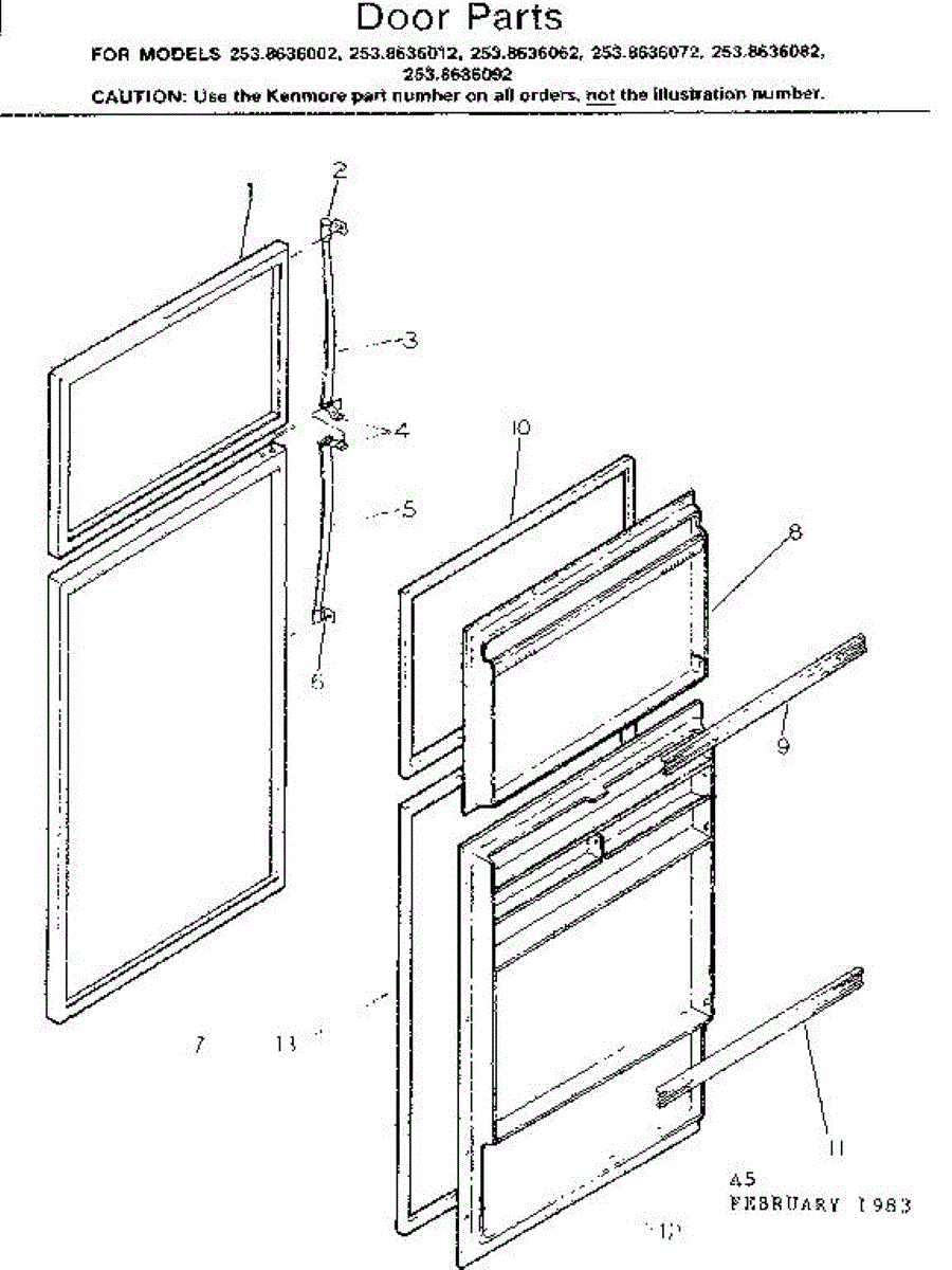 Parts for Kenmore 253.8636082 (2538636082, 253 8636082): Door Parts