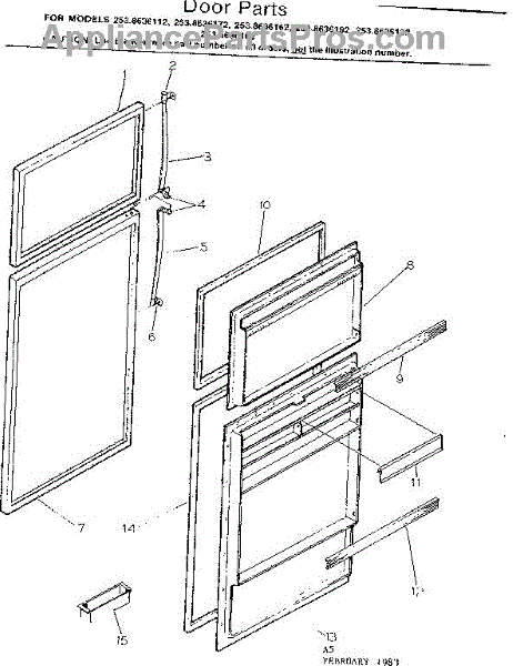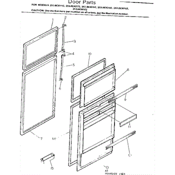 Parts for Kenmore 253.8636112 (2538636112, 253 8636112): Door Parts
