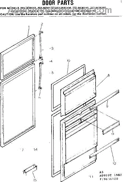 Parts for Kenmore 253.8636190 (2538636190, 253 8636190): Door Parts