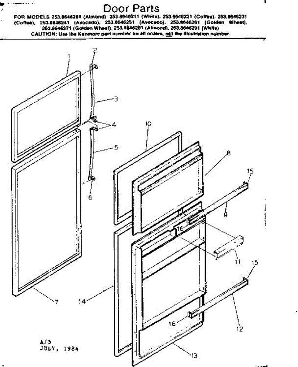 Parts for Kenmore 253.8646221 (2538646221, 253 8646221): Door Parts