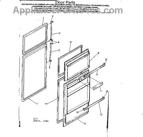 Parts for Kenmore 253.8646240 (2538646240, 253 8646240): Door Parts