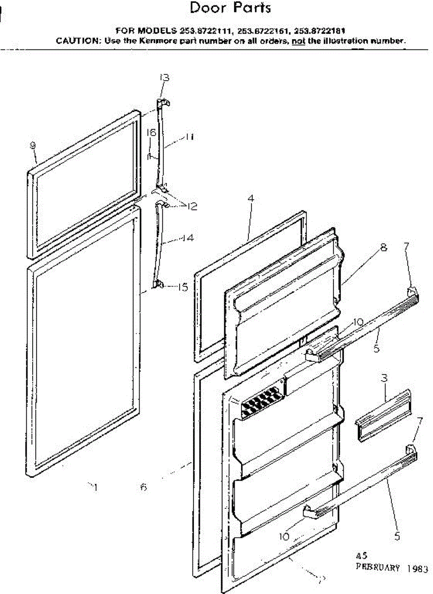 Parts for Kenmore 253.8722111 (2538722111, 253 8722111): Door Parts