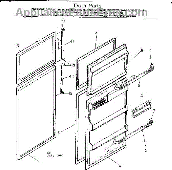 Parts for Kenmore 253.8737101 (2538737101, 253 8737101): Door Parts
