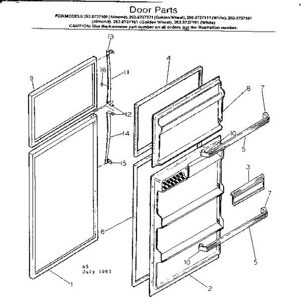Parts for Kenmore 253.8737191 (2538737191, 253 8737191): Door Parts