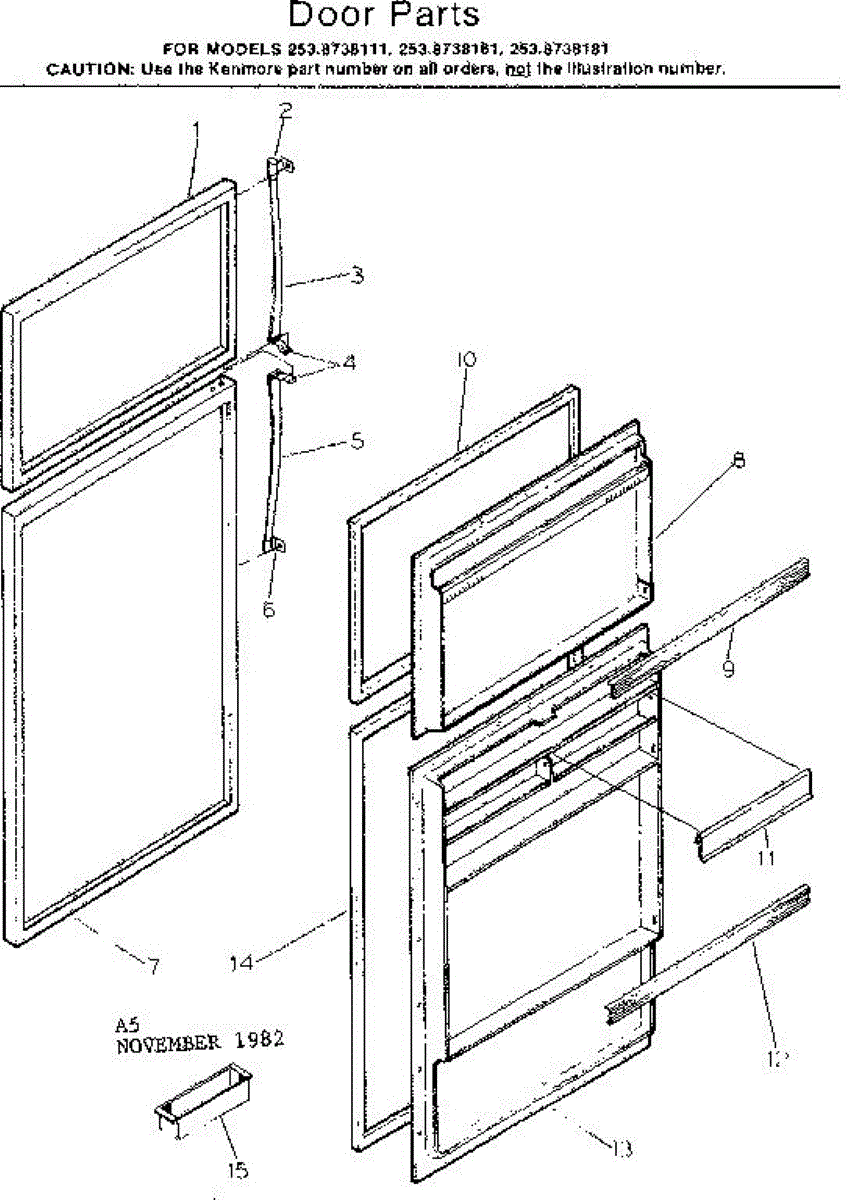Parts for Kenmore 253.8738111 (2538738111, 253 8738111): Door Parts
