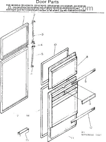 Parts for Kenmore 253.8738180 (2538738180, 253 8738180): Door Parts