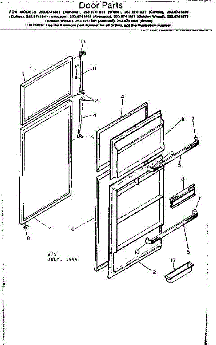 Parts for Kenmore 253.8741851 (2538741851, 253 8741851): Door Parts
