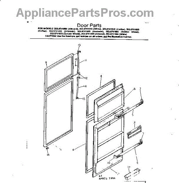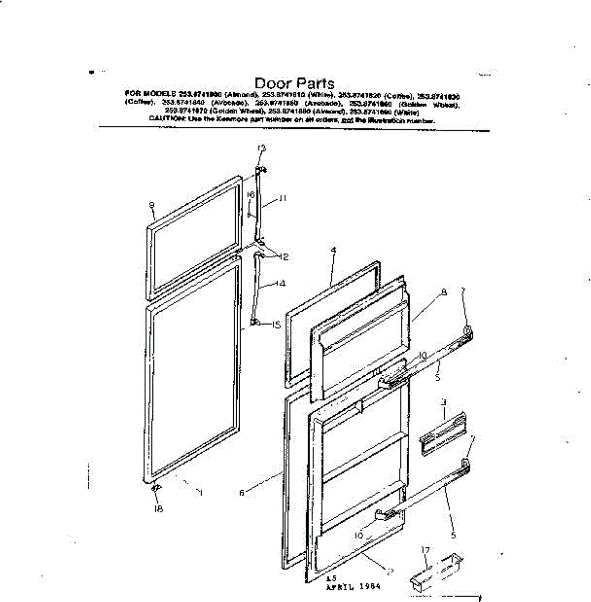 Parts for Kenmore 253.8741870 (2538741870, 253 8741870): Door Parts