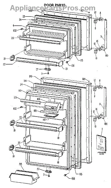 Parts for Kenmore 363.8385180 (3638385180, 363 8385180): Door Parts