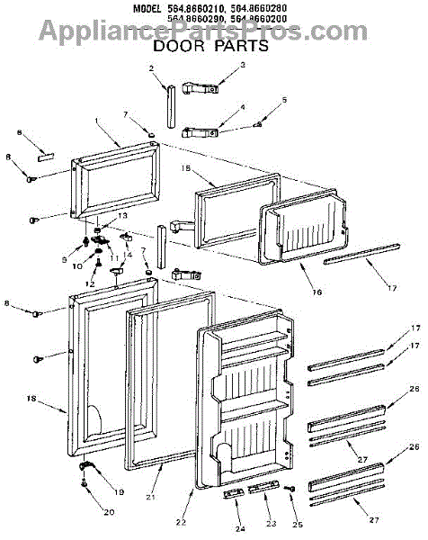 Parts for Kenmore 564.8660290 (5648660290, 564 8660290): Door Parts