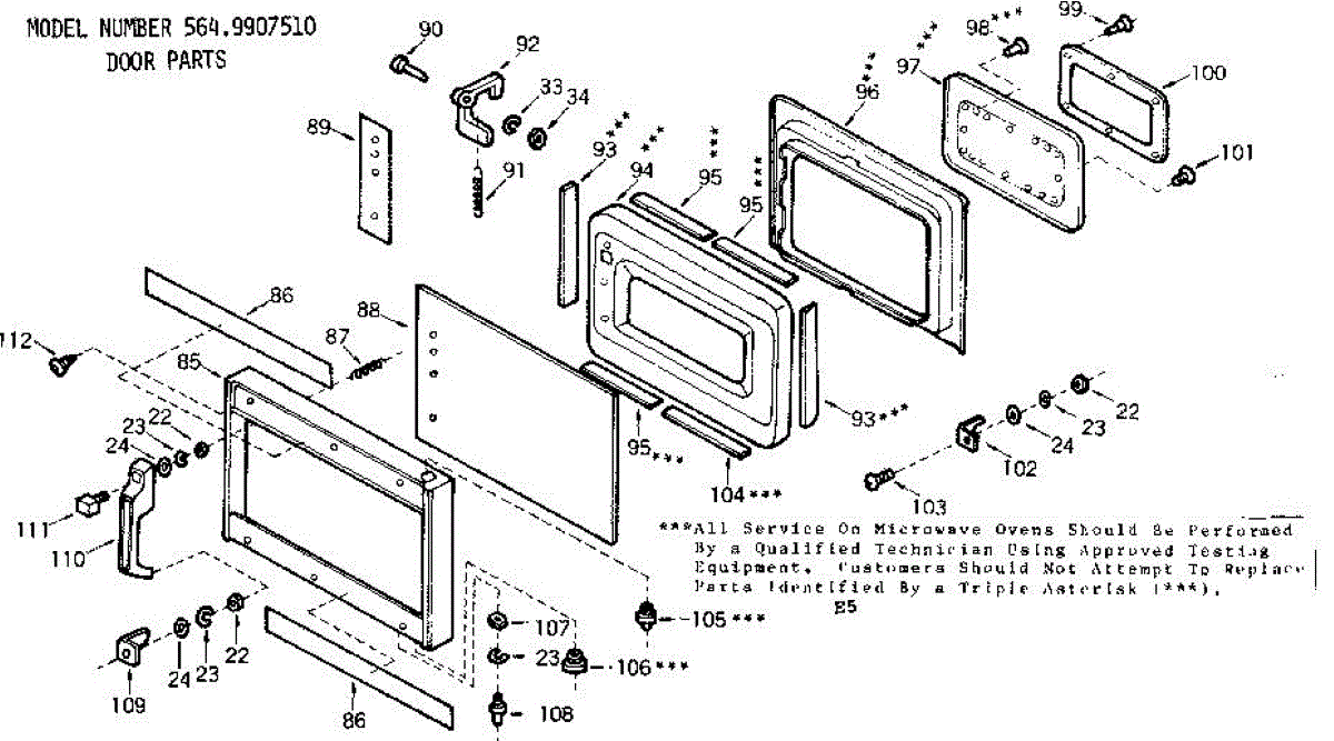Parts for Kenmore 564.9907510 (5649907510, 564 9907510): Door Parts