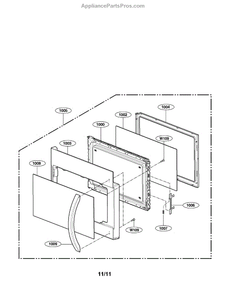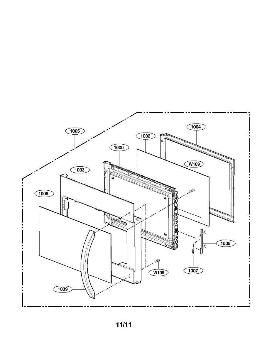 This door frame assembly replaces the appliance's outer door trim and support to restore proper door fit and protect the inner door components. Ideal when the door frame is cracked, bent, or no longer secures the door evenly. What it does: