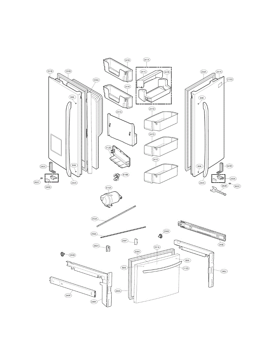 The Door Basket Assembly is an OEM replacement part for LG refrigerators. This component provides storage space and organizational compartments on the interior of the refrigerator door, allowing you to conveniently store and access smaller items such as condiments, beverages, or dairy products.