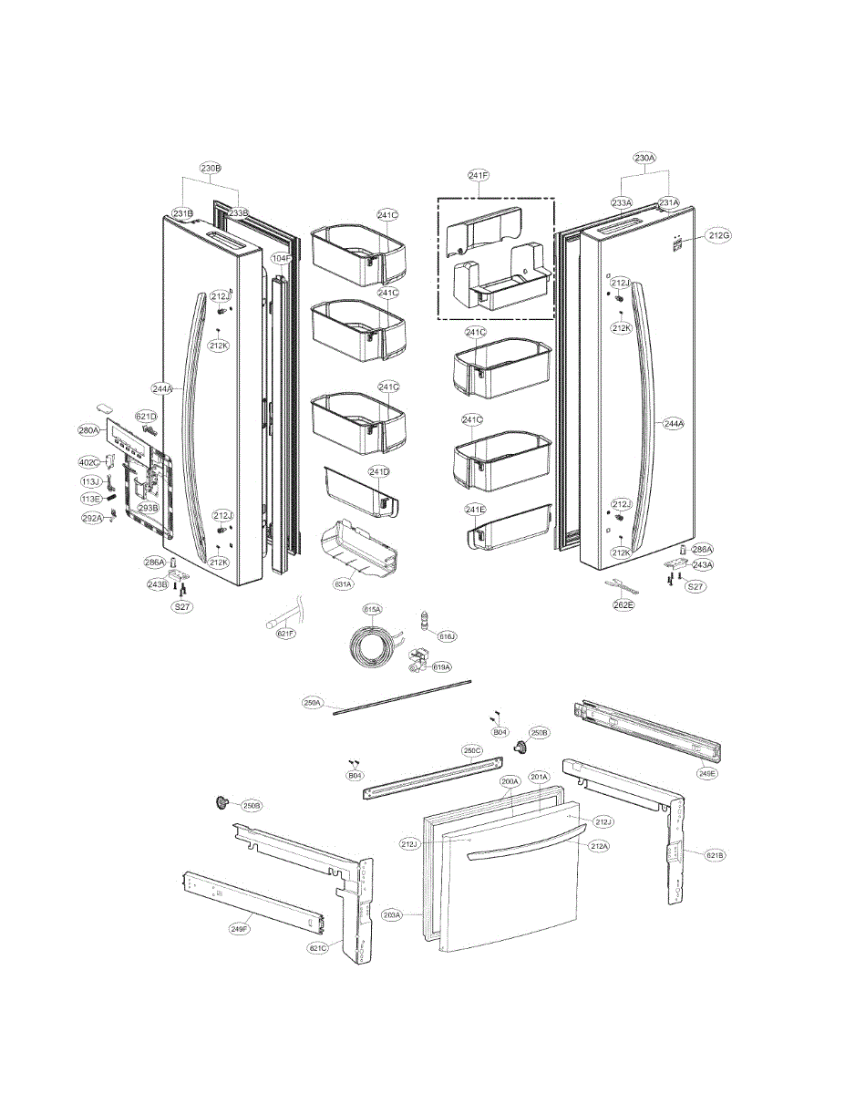 Front plate assembly that covers and protects the exterior panel of your refrigerator. Replace if cracked, broken, or missing to restore appearance.
