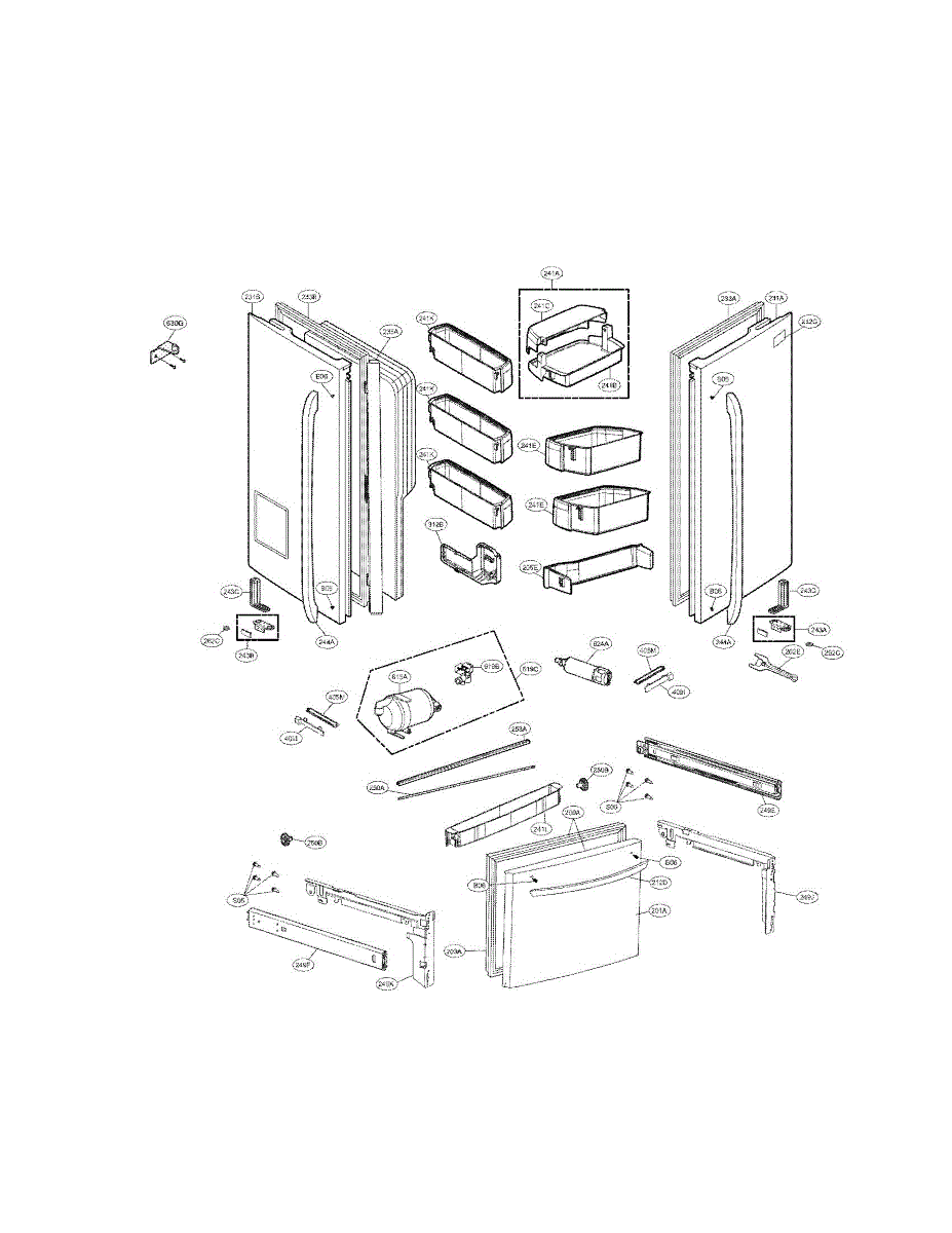 The Basket Assembly is an OEM component specifically designed for LG Door-in-Door refrigerators containing bottom-mounted crisper drawers. This integral assembly organizes stored items within the refrigerator doorway.