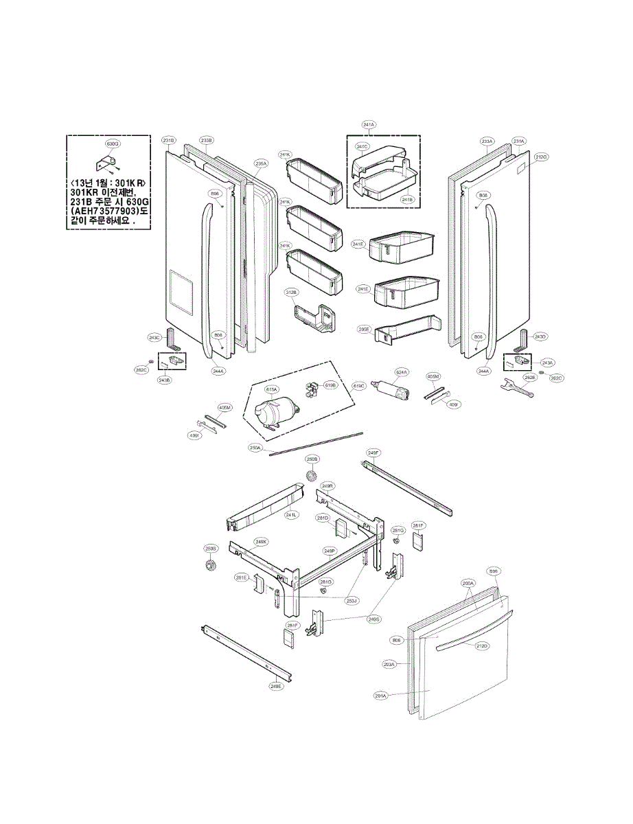 Front cover assembly for bottom-mount refrigerators. Replaces cracked, broken, or damaged exterior cover panels. Essential for restoring appearance.