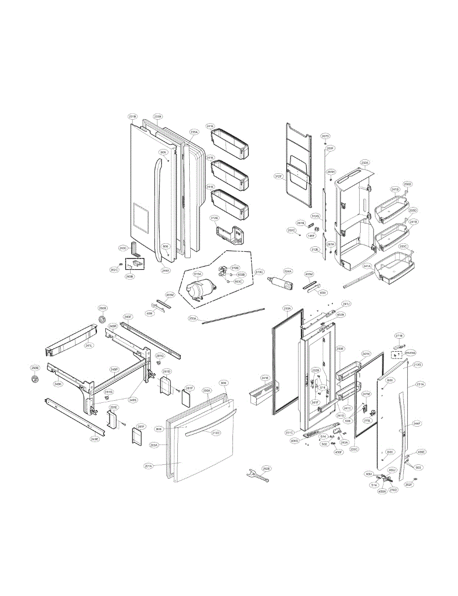 The Basket Assembly is an OEM component specifically designed for LG Door-in-Door refrigerators containing bottom-mounted crisper drawers. This integral assembly organizes stored items within the refrigerator doorway.