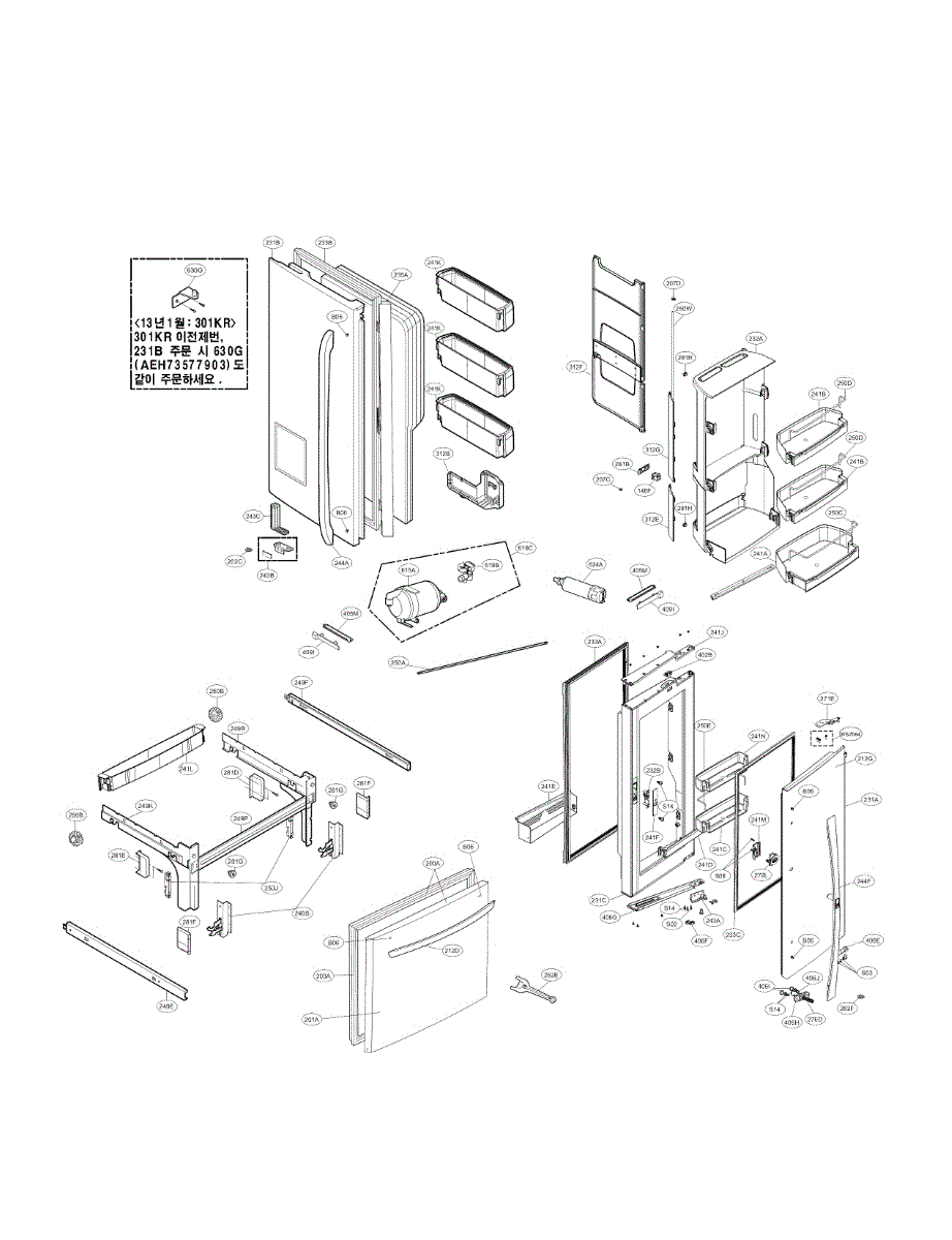 Front cover assembly for bottom-mount refrigerators. Replaces cracked, broken, or damaged exterior cover panels. Essential for restoring appearance.