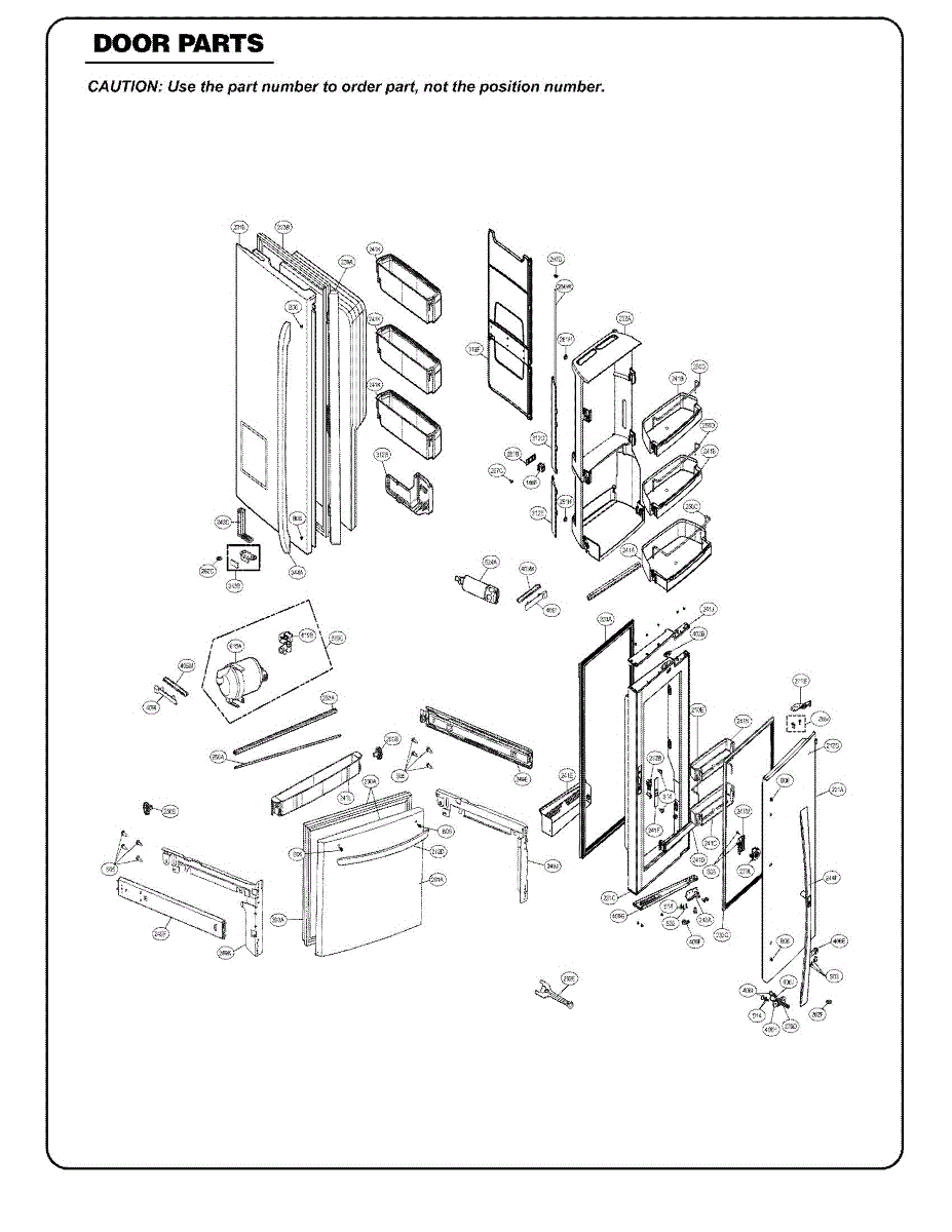 The Door Gasket Assembly is an OEM replacement part for LG refrigerators. This part seals the door and maintains a thermal barrier. Proper compression provides energy efficiency. Causes of a faulty gasket assembly may involve deterioration as adhesive softens from repeated compression. Mineral deposits accumulated over extended use could also harden material reducing flexibility. Symptoms of a problematic gasket include: