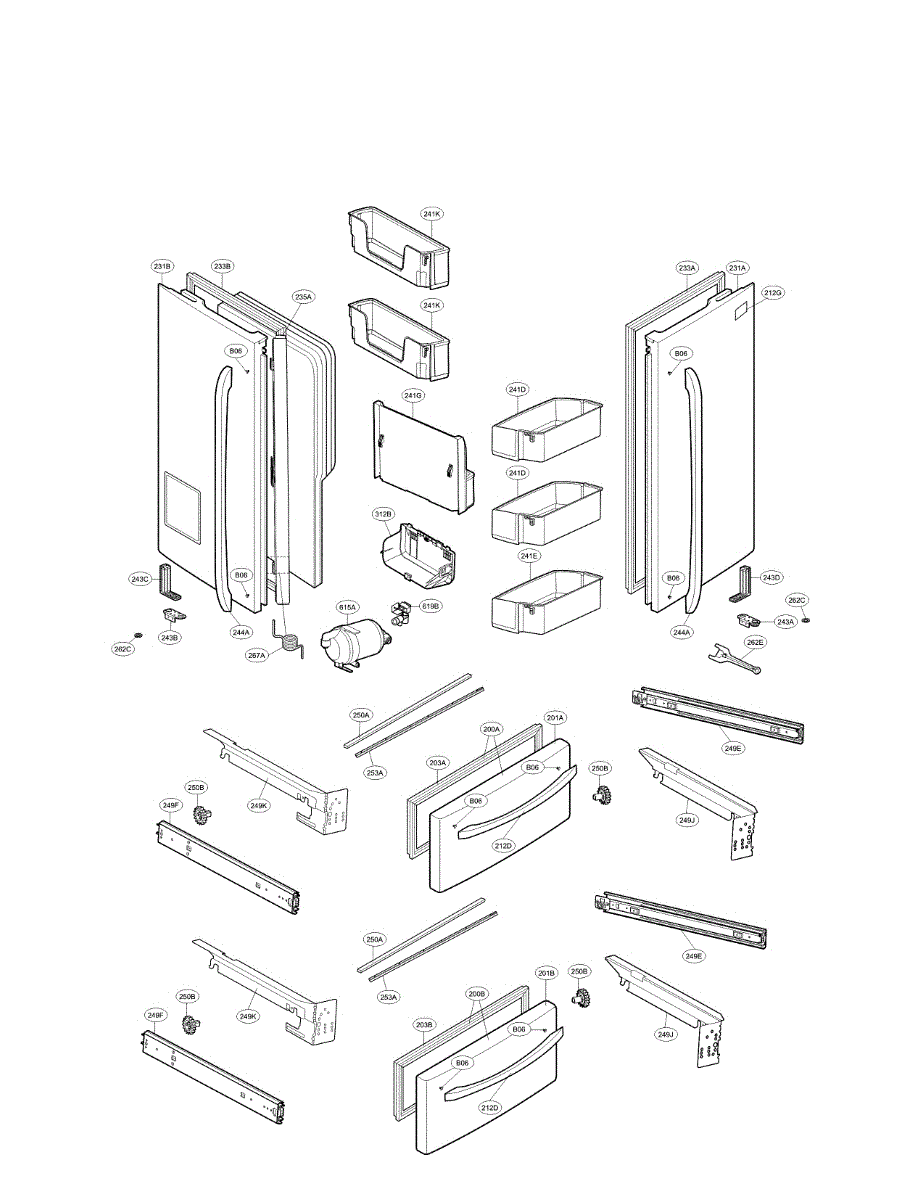 Connects French doors on refrigerators. Replace if cracked, broken, or spring-damaged. Installs between doors to maintain proper seal alignment.