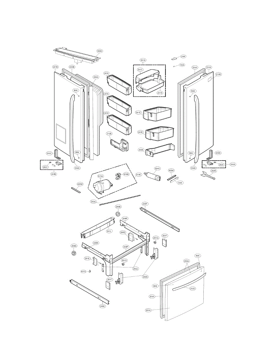 Front cover assembly for bottom-mount refrigerators. Replaces cracked, broken, or damaged exterior cover panels. Essential for restoring appearance.