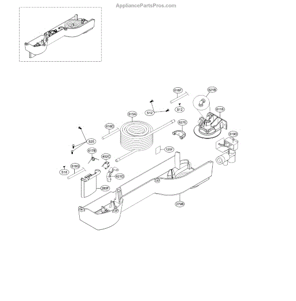 This inject tube routes water from the supply to the appliance's ice/water system, helping deliver a sealed path for water flow. Replacing a damaged tube restores proper water delivery and prevents leaks at the inlet. What it does