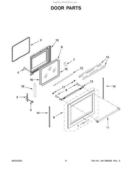 This door liner is the oven's inner door panel that helps protect the door cavity and support the inner glass. Replaces a damaged or worn liner to restore a clean interior surface and proper glass fit. What it does: