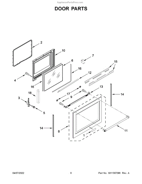 This door liner is the oven's inner door panel that helps protect the door cavity and support the inner glass. Replaces a damaged or worn liner to restore a clean interior surface and proper glass fit. What it does: