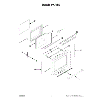 This door liner is the oven's inner door panel that helps protect the door cavity and support the inner glass. Replaces a damaged or worn liner to restore a clean interior surface and proper glass fit. What it does: